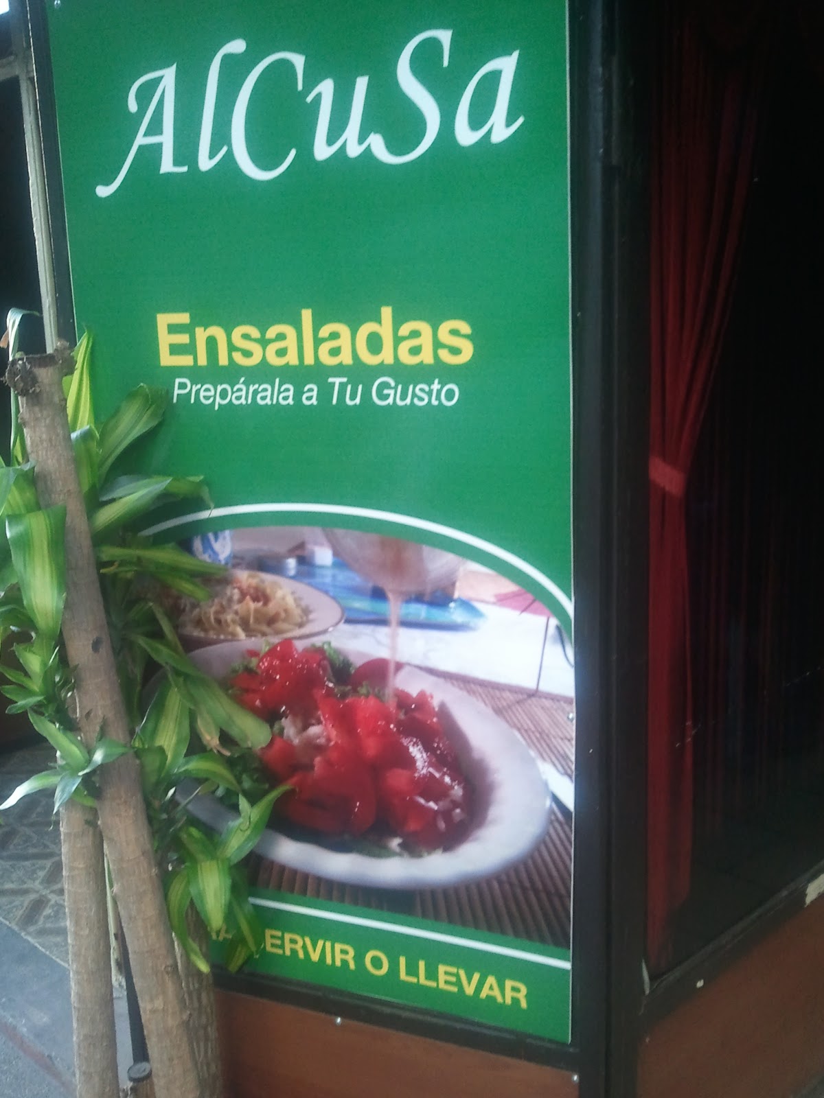 This was the mistake we made tonight, heading out at about 6 to a restaurant that Lojo had seen during the day that advertised healthy-looking salads. Here's the sign -- I'm not sure what that red stuff is, but "salad prepared to your taste" sounded good...