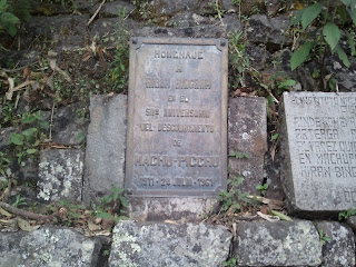 "The National Institute of Culture, Cusco, honors Melchor Arteaga and the Richarte and Alvarez families, who were living in Machu Picchu before Hiran [sic] Bingham arrived." -- October 1993 |